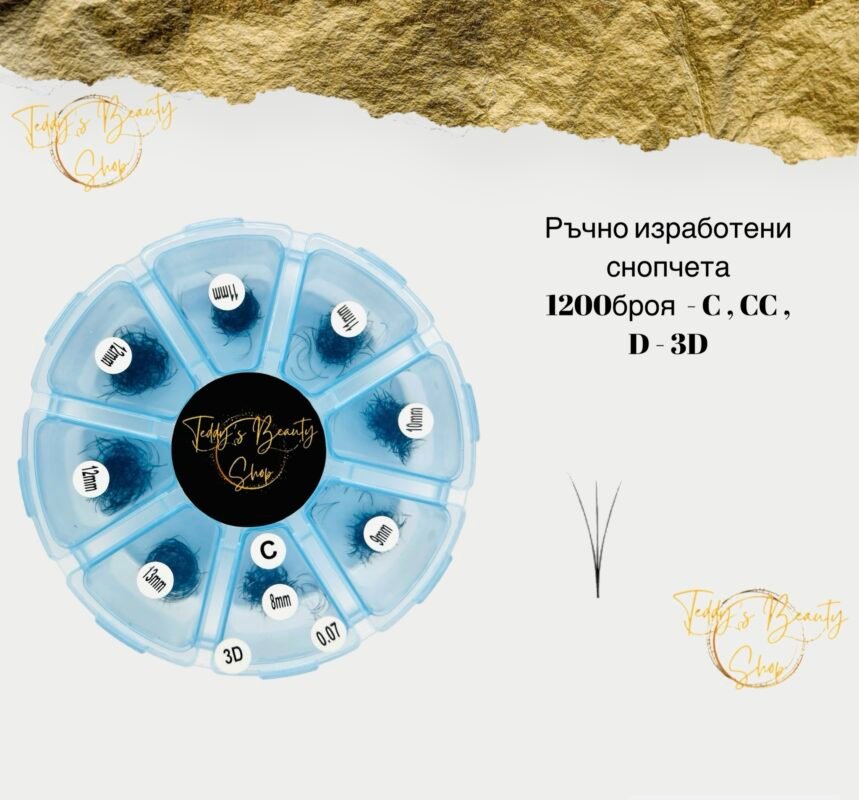 Ръчно изработени готови снопчета за мигли 1200 броя микс кутия – C , CC , D извивка – 3 D
