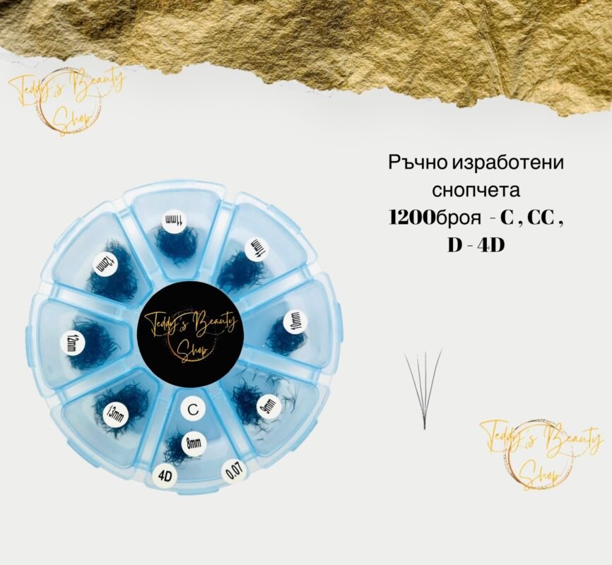 Ръчно изработени готови снопчета за мигли 1200 броя – C , CC и D извивка – 4 D