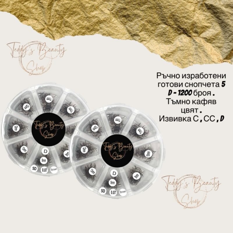 Ръчно изработени готови снопчета за мигли – 1200 броя микс – М извивка 5 D