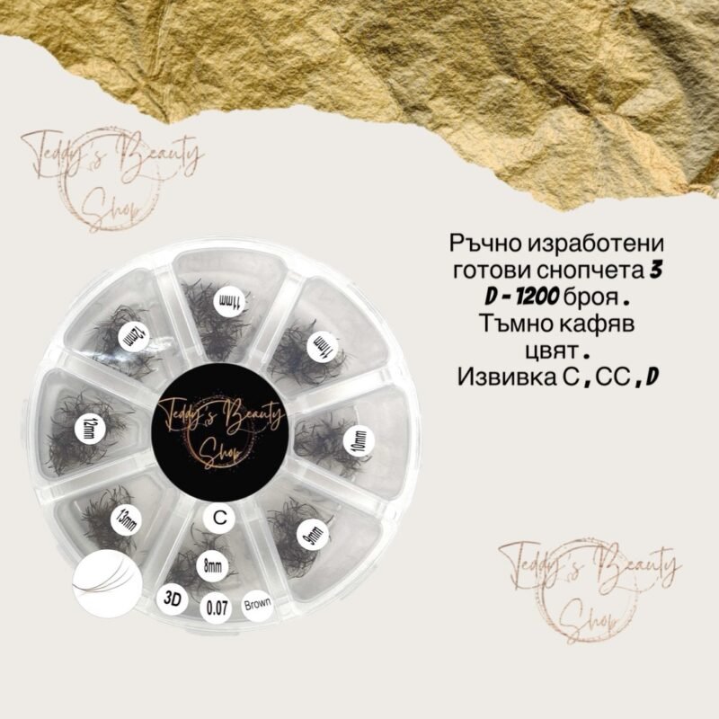 Ръчно изработени готови снопчета за мигли 1200 броя микс кутия – C , CC , D извивка – 3 D