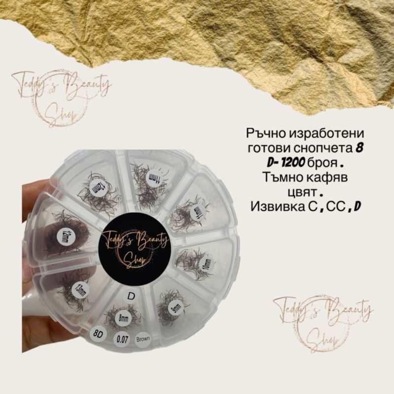 Ръчно изработени готови снопчета за мигли 1200 броя – C , CC и D извивка – 8 D