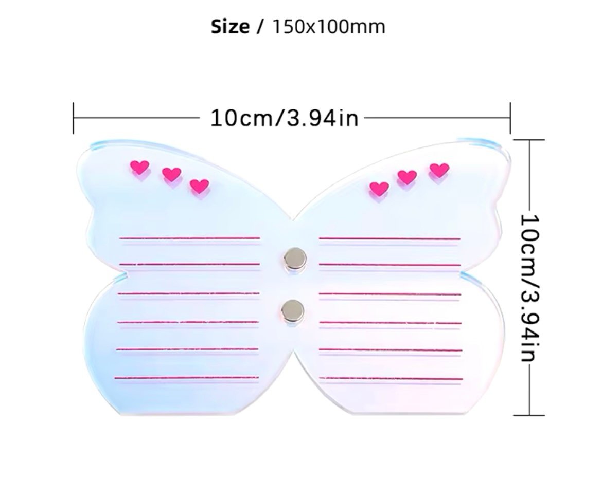 Акрилната поставка Butterfly с място за пинсета с магнит и две страни за поставяне на мисли .