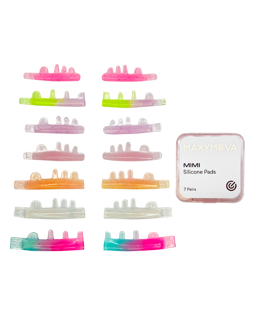 Комплектът MIMI Silicone Eyelash Lift Shields съдържа 7 чифта силиконови падове в разнообразни размери – S, S+, M, L, XL, LL, 2XL, за да можеш да постигаш както деликатен лифтинг, така и драматична C-образна извивка.